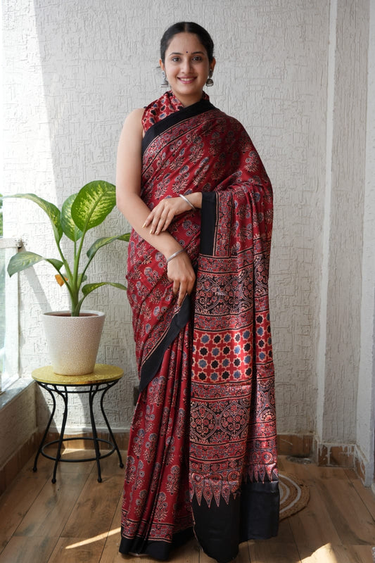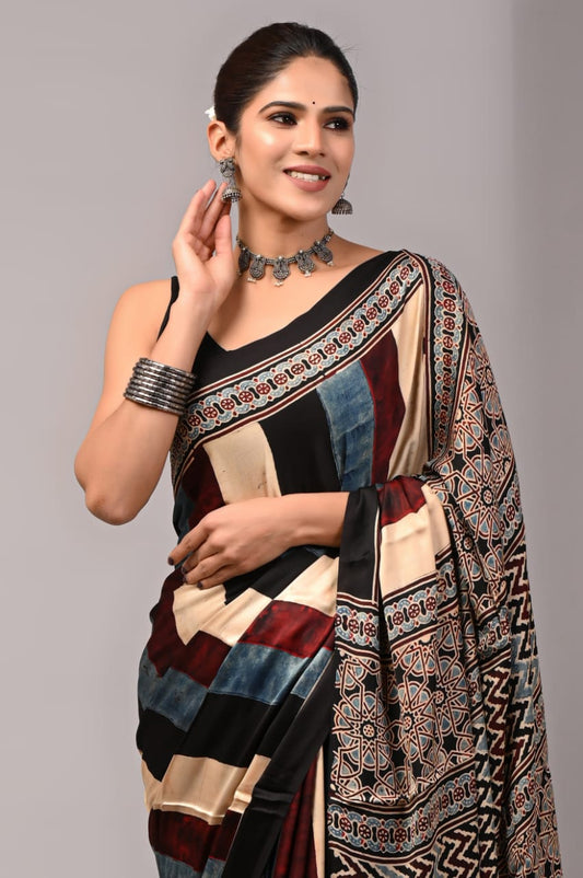 Extra RS.200 OFFAjrak-Bagru Pure Modal Silk Saree