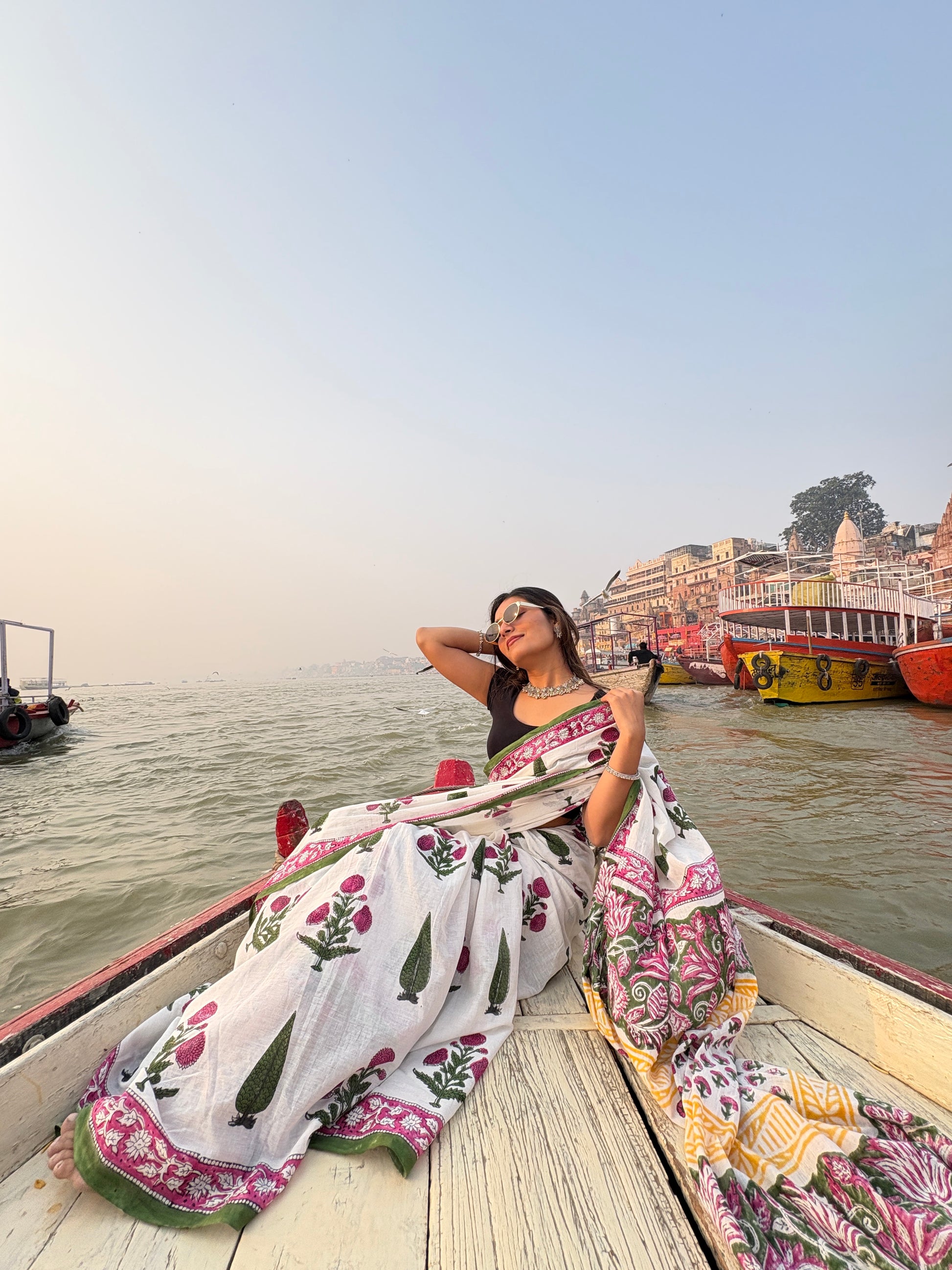 White Mul Cotton Saree |